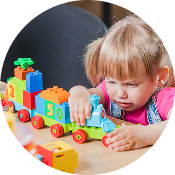 Emphasis on gentle routines, socialization, sensory-based play, basics of numbers, colors, shapes, songs, stories.